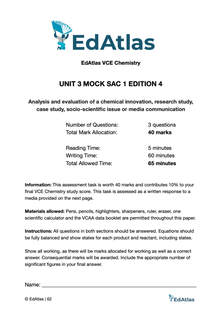 As a past student myself, I found that lots of tutors unfortunately just regurgitated content and didn’t provide proper techniques. At EdAtlas, we take a smarter, more strategic approach tailored to the VCE Chemistry study design, helping you master SACs and ace the exam.