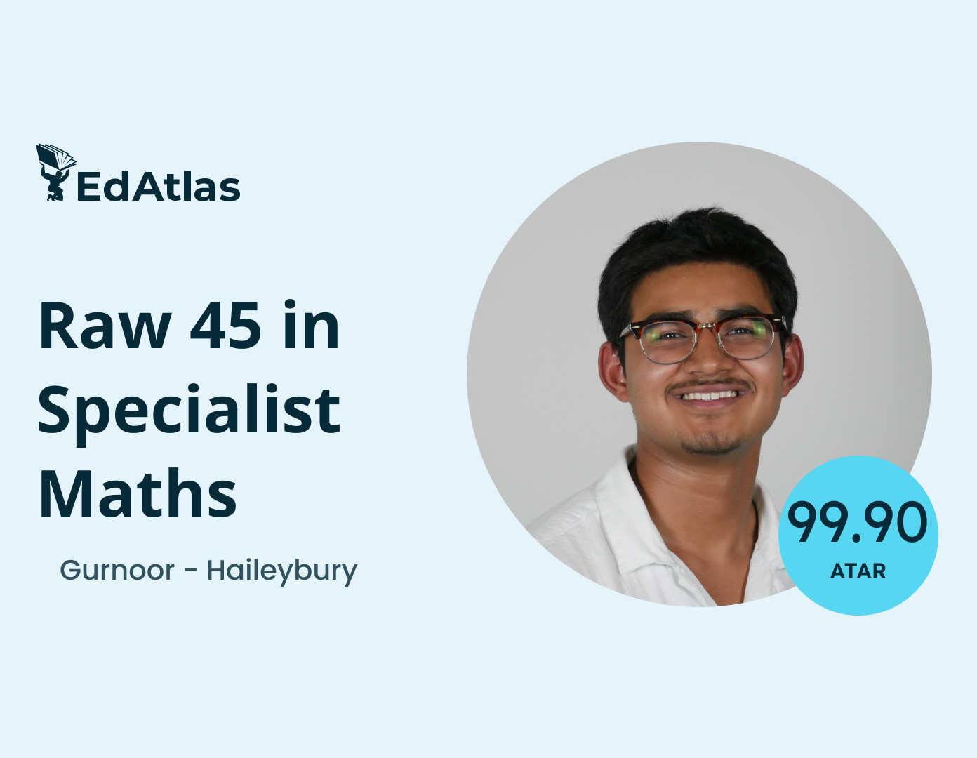 Gurnoor, Haileybury, Raw 45 Specialist Maths, 99.90 ATAR