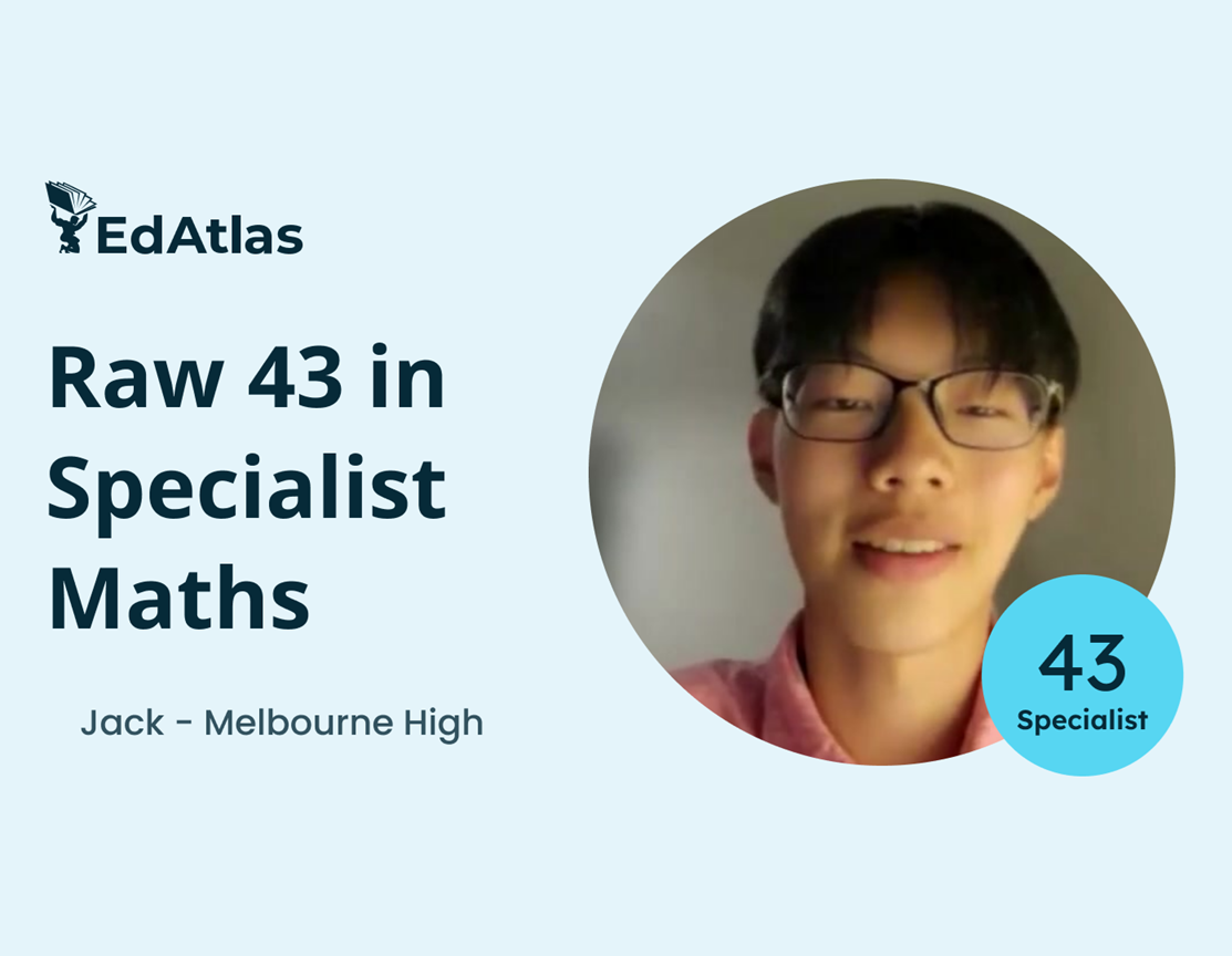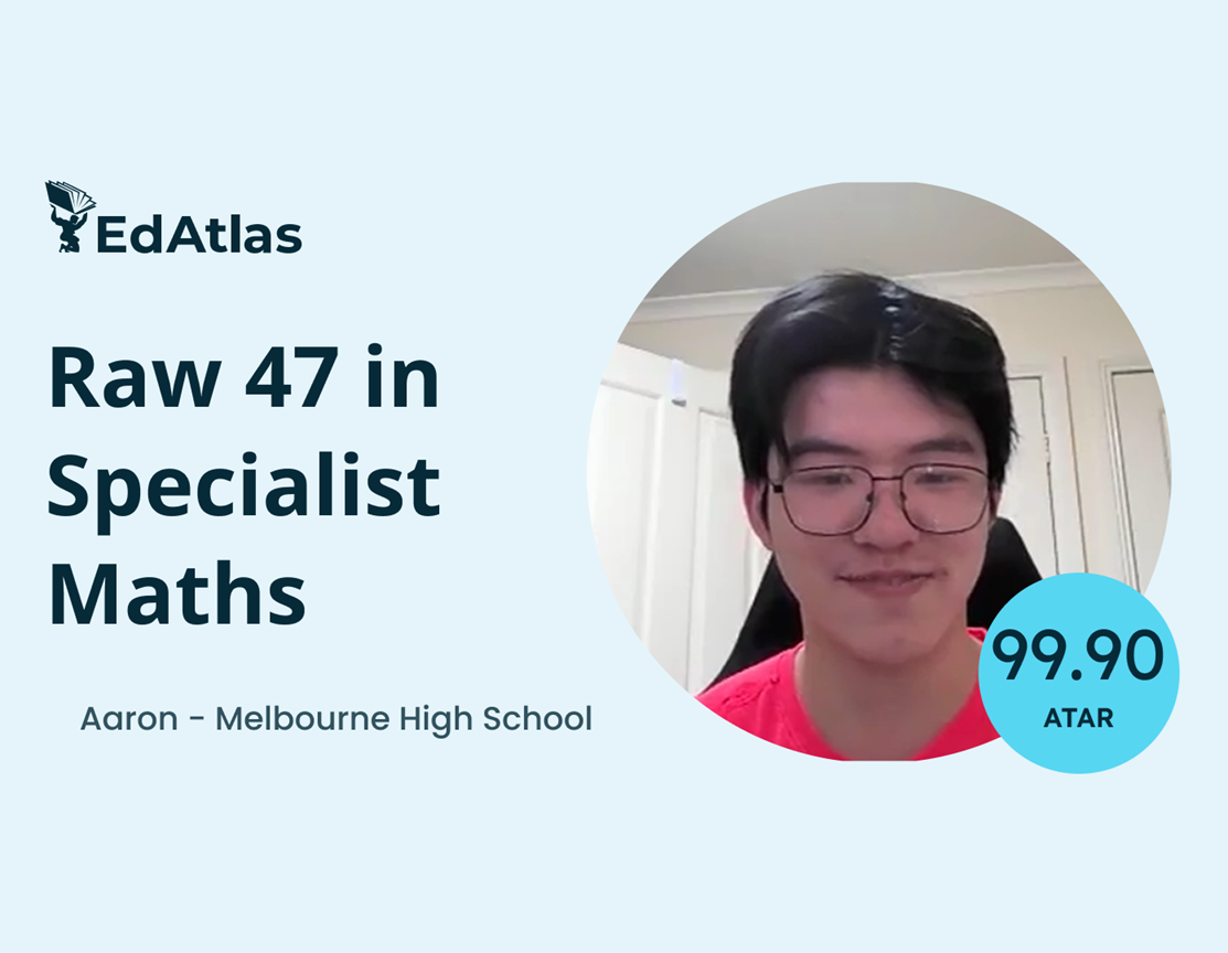 “I was really worried that I would disappoint myself because I get really stressed under exam conditions [and] test conditions. But when I went to EdAtlas, it really helped expose me to that environment of [SAC and exam conditions] a lot in the mock SACs. And also, Rob really helped give [me] the mindset I needed to succeed. Having that voice which supported me really helped me do well at school.”