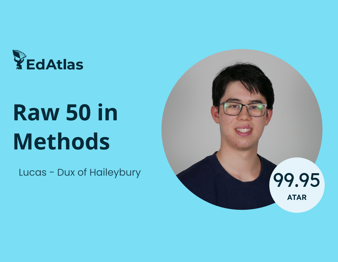 Lucas, Dux of Haileybury (2025), Raw 50 Methods, Raw 45 Specialist Maths, 99.95 ATAR