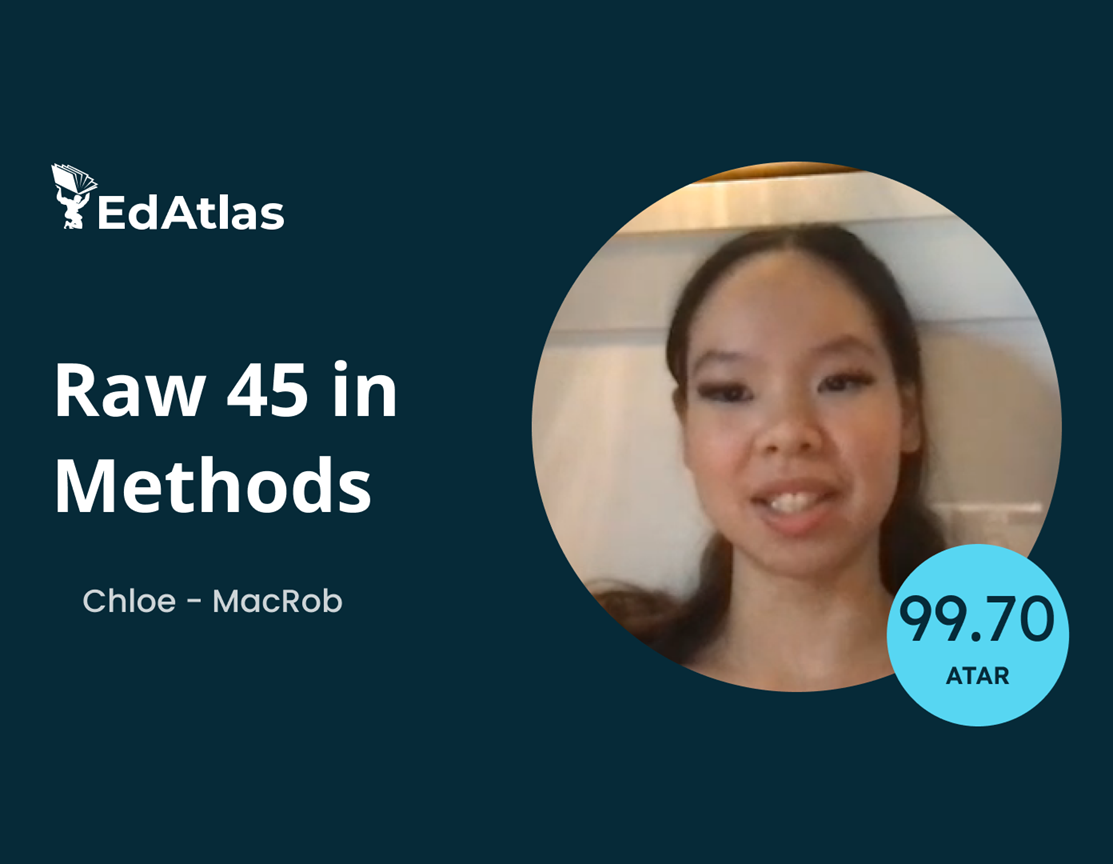 Chloe, MacRob, 99.70 ATAR, 45 raw Methods, 43 raw Specialist