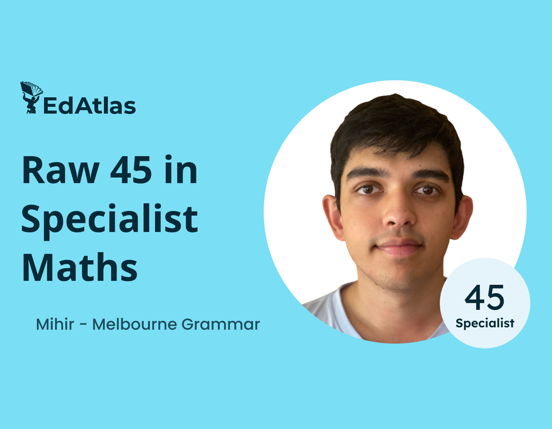 Mihir, Melbourne Grammar, 99.90 ATAR, 45 raw Specialist
